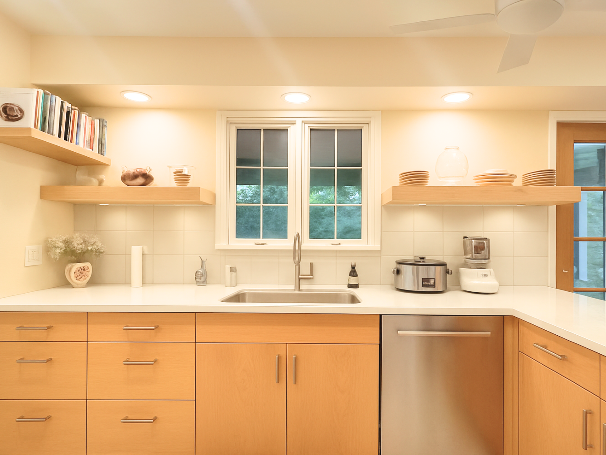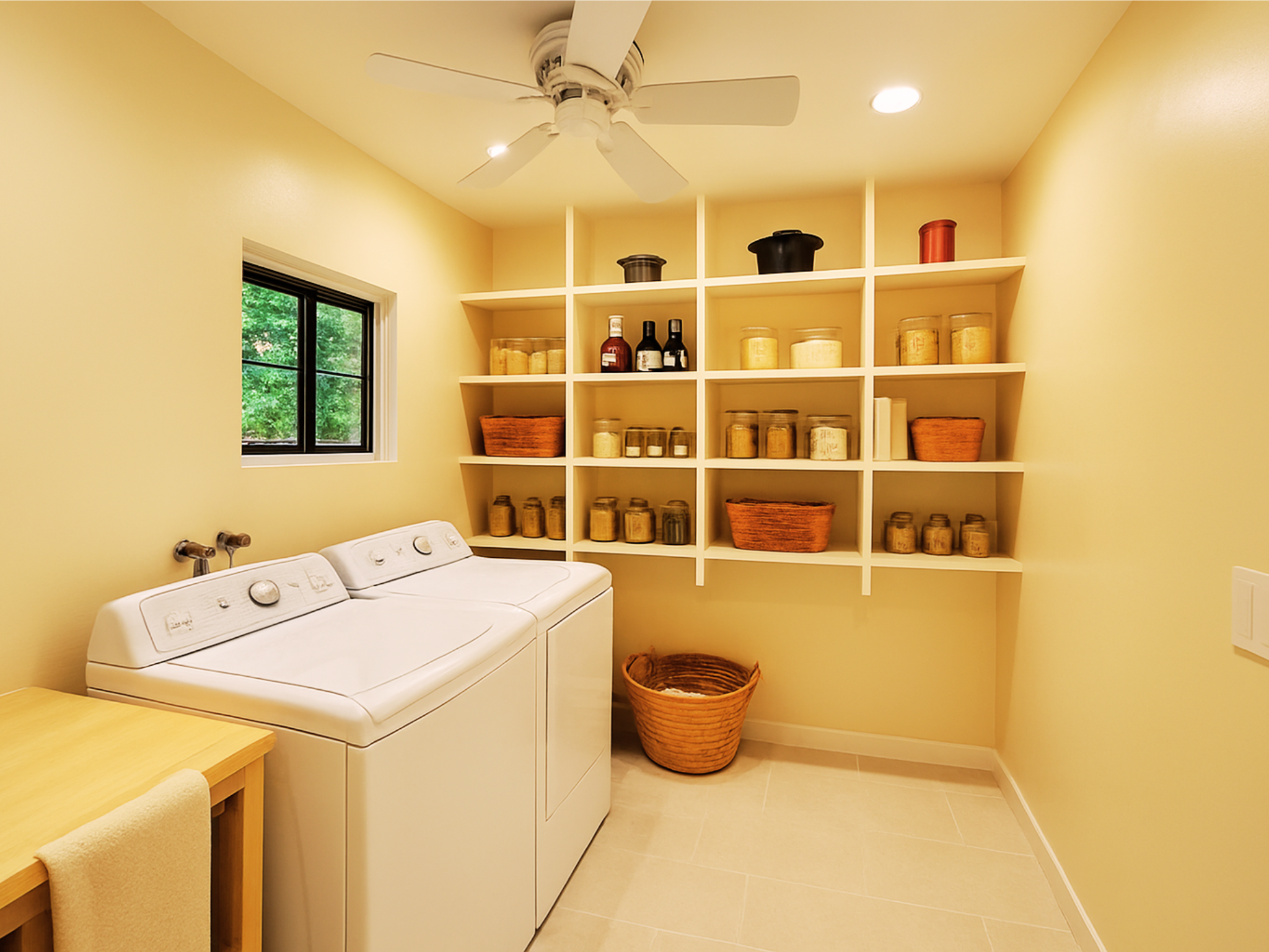 The remodeled laundry room and pantry combine efficiency with style. Open shelving keeps essentials organized and accessible, while durable finishes ensure longevity. This functional space aligns perfectly with the home’s minimalist remodel design philosophy: simple, streamlined, and uncluttered.